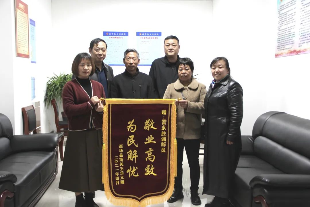 “要不是雷調(diào)解員出面調(diào)解,我的錢還不知道什么時候能要回來呢,這可幫了我們大忙……”4月13日上午,當事人王某將一面印有“敬業(yè)高效 為民解憂”的錦旗送至西華縣法院政協(xié)委員調(diào)解員雷永勝手中,對其耐心高效的調(diào)解工作表示衷心感謝。