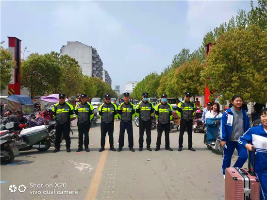 在七八年級到九年級段集中離校的兩天時間內(nèi),縣交警大隊鐵騎中隊負責(zé)人何濤帶領(lǐng)執(zhí)勤民警一直堅守在學(xué)校周邊執(zhí)勤崗位,全身心的投入工作,加強交通疏導(dǎo),分流過往車輛,并向?qū)W生和家長宣傳交通安全常識,確保學(xué)生和家長平安回家。他們站在路口和車流中認真執(zhí)勤,指揮車輛有序通行,耐心勸導(dǎo)車輛繞道,接受過往司機咨詢,及時疏導(dǎo)易堵路段,一直堅持到全部學(xué)生、家長離校才收隊撤離,以實際行動保障了數(shù)千名學(xué)生的平穩(wěn)、安全、有序離校,在學(xué)生家長中間產(chǎn)生了積極的影響,贏得了家長學(xué)生的一致贊賞,以安全護航保師生平安,切實實現(xiàn)了讓家長放心,學(xué)生舒心的良好社會效應(yīng)。②2