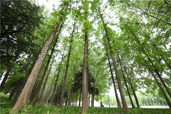與城區(qū)的各個游園相比,此處稍顯僻靜,翠陰蒙密,再加上流水淙淙,更有風(fēng)物清幽之感。閑暇之時,三三兩兩的居民結(jié)伴散步,大自然的靜謐與靈動在這里相交相融,讓人心曠神怡。