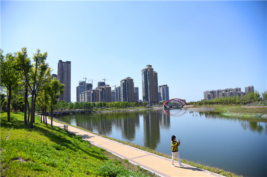 眼下雖不是詞中所描繪的初春時節(jié),但是暮春的水系風(fēng)光更具詩情畫意。女媧路魚翔湖是一處以水凈化、水景觀、水科普為主的濱河濕地游園。漫步于此,新綠點綴其中,步道曲徑通幽,河水清澈透明,頓覺神清氣爽。沙河玉盤落珠節(jié)點,曲廊環(huán)繞,波光鱗鱗,垂柳慢舞,河流猶如飄帶蜿蜒流淌,一路步行聞花香聽鳥鳴,繪出一幅唯美畫卷。②9