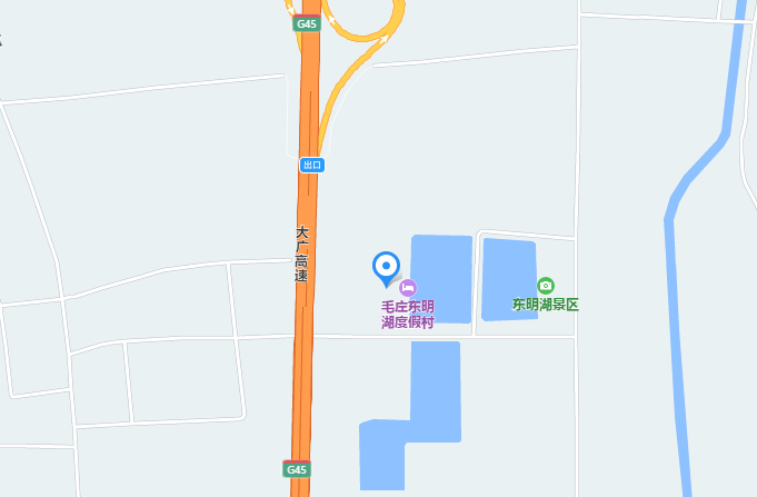 開著車、全家兜風、免費登上大廣高速、到扶溝大新口下、向東一兩公里就能看到:東明湖度假村。
