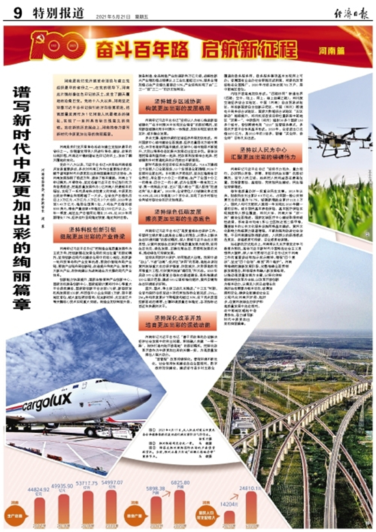 河南是我們黨開展革命活動與建立黨組織最早的省份之一,在黨的領(lǐng)導下,河南這片鐫刻著紅色印記的沃土,發(fā)生了翻天覆地的滄桑巨變。黨的十八大以來,河南堅定沿著習近平總書記指引的方向奮勇前進,把高質(zhì)量發(fā)展作為1億河南人民最根本的福祉,實現(xiàn)了一系列具有標志性意義的突破。站在新的歷史起點上,河南將奮力譜寫新時代中原更加出彩的絢麗篇章。