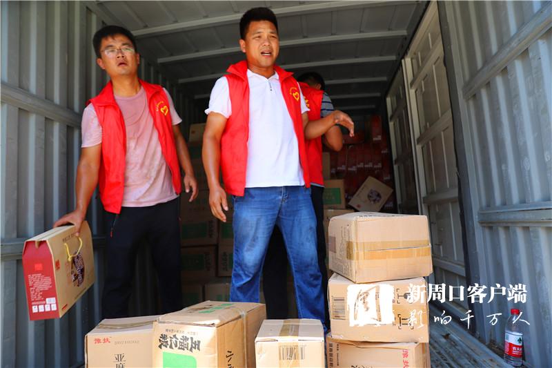 當(dāng)天中午,掛著印有“昨天大家助我脫貧,今天我為救災(zāi)出力!”條幅的防汛救災(zāi)物資運(yùn)輸車抵達(dá)周口港區(qū)。“要不是前兩天防御臺風(fēng)‘煙花’,我們早就來了?!甭」糯妩h支部書記段長春一下車就連忙慰問眾人。一同前往的還有6位年輕力壯的志愿者,他們不辭勞苦,和港區(qū)消防、城管人員一起頂著烈日,用了半個(gè)多小時(shí)將滿車物資搬運(yùn)到位。