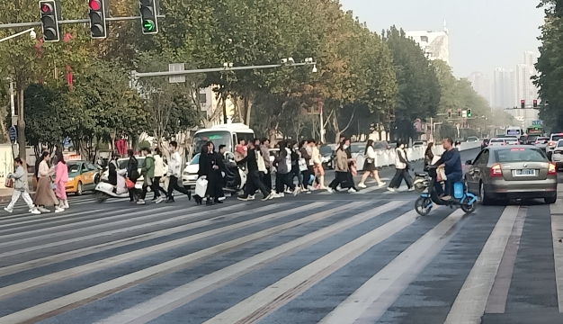 近日,在周口城鄉(xiāng)一體化示范區(qū)人和路和平安路交匯口,一群身穿印有“周口交通技師學(xué)院”字樣紅色馬甲的忙碌身影引來眾多路人注目。