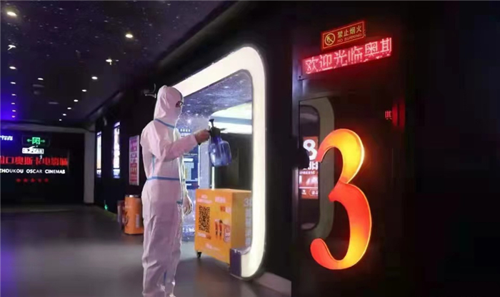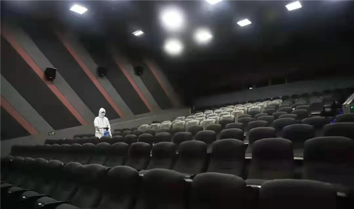 市某影城在觀眾觀影后消毒