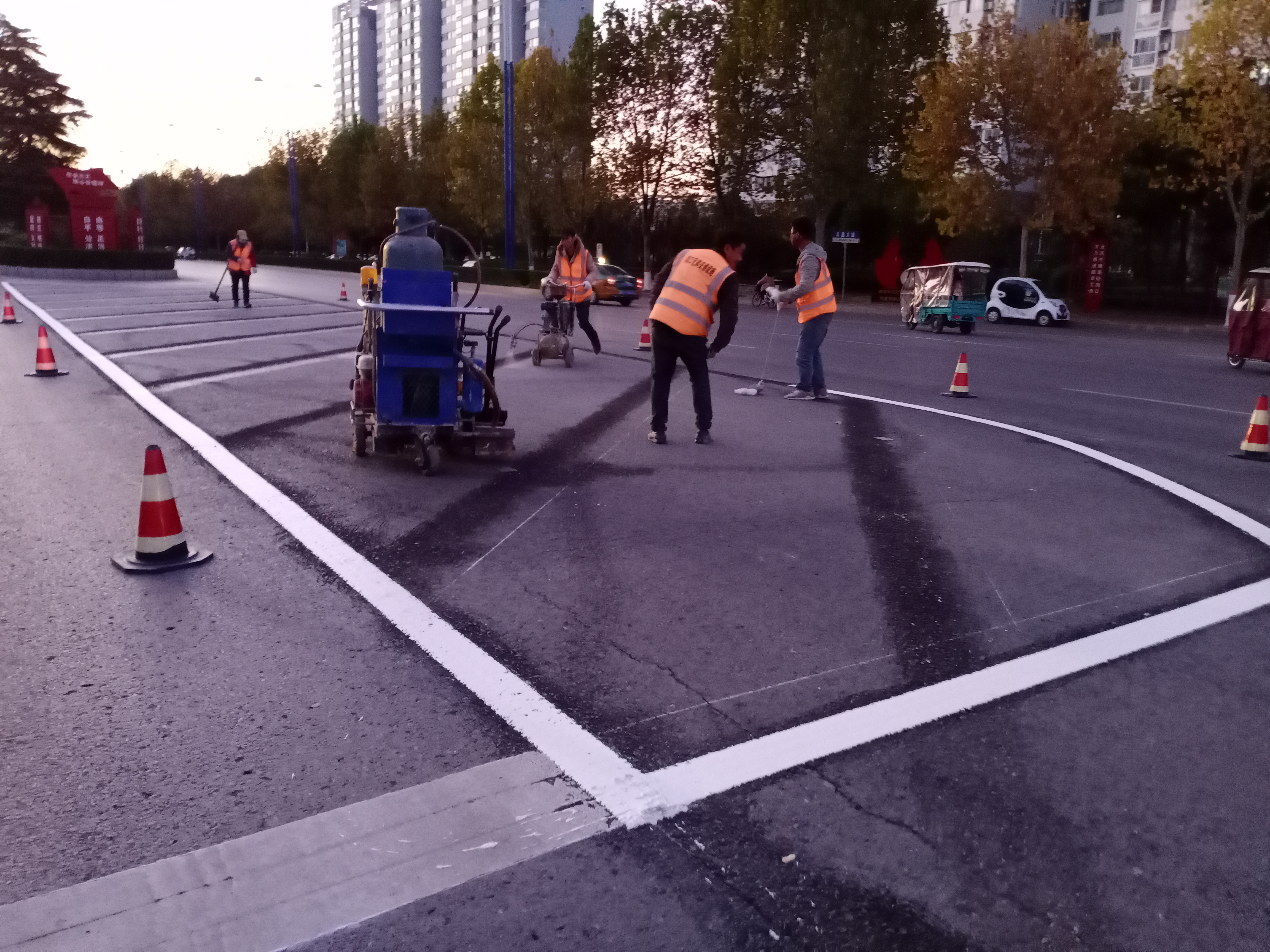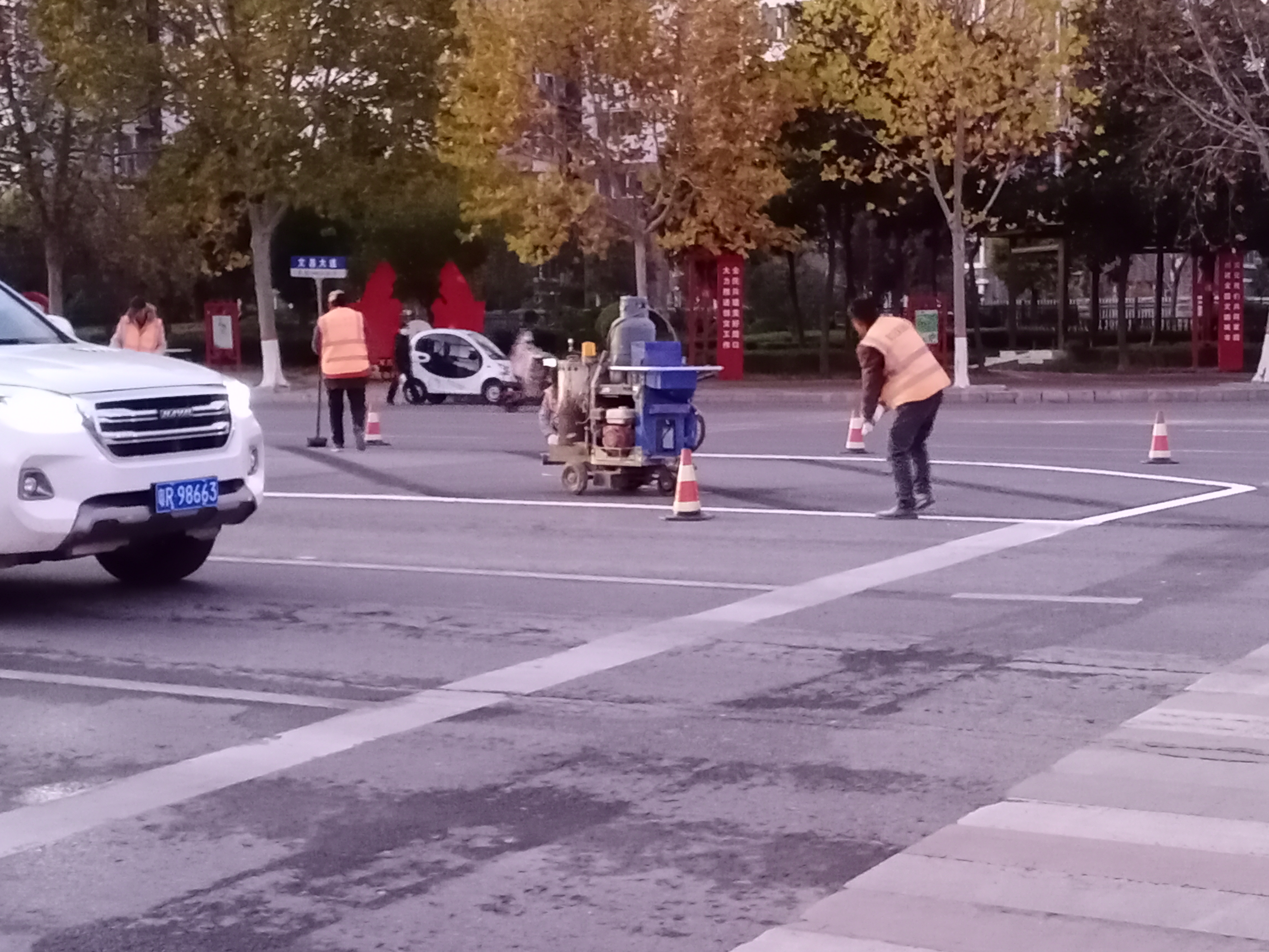 11月9日17時(shí)許,記者在周口市中心城區(qū)文昌大道與中原路交叉口看到,施工人員正在對交叉路口上的交通標(biāo)志線進(jìn)行施劃,規(guī)范車輛和行人通行秩序,保證交通安全暢通有序,方便群眾出行。③3記者 張洪濤 攝