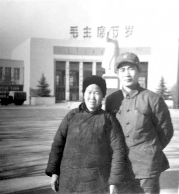 馮光明和養(yǎng)母楊素民有一張合影,背景是原河南省博物館。那是他參軍不久和養(yǎng)母唯一的合影。照片里,一身戎裝的他站在養(yǎng)母身后,正直偉岸。照片背后,寫有四個字“恩情如?!?。舊社會,“娘”生活在社會底層,受人欺負(fù)?,F(xiàn)在,馮光明長大成人,他有能力保護(hù)“娘”,要用一生感恩“娘”!