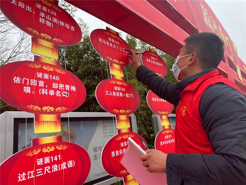 “阿姨您好!148號燈謎的謎底是‘香皂’?!?月15日,在周口市文化藝術(shù)中心西廣場,正在舉行“潁河春燈——元宵燈謎猜猜猜”活動?!拔易钕矚g猜燈謎了,猜對以后我還能拿到一個玩具小飛機(jī),真開心!”說話的這個小男孩姓汪,今年8歲,在今天這場猜燈謎活動中,他是第一位給出正確答案的參與者。