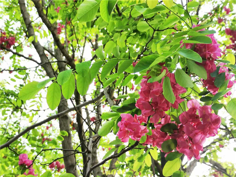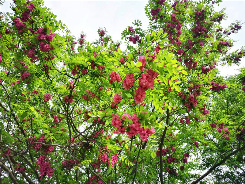 “槐林五月漾瓊花,郁郁芬芳醉萬家?!毖巯拢谥芸跒I河公園,紅色的槐花怒放,芳香四溢,惹人心醉。陽光下,一串串、一簇簇、一樹樹槐花隨風(fēng)搖曳,美不勝收。周口日?qǐng)?bào)·周道客戶端記者 普淑娟 攝