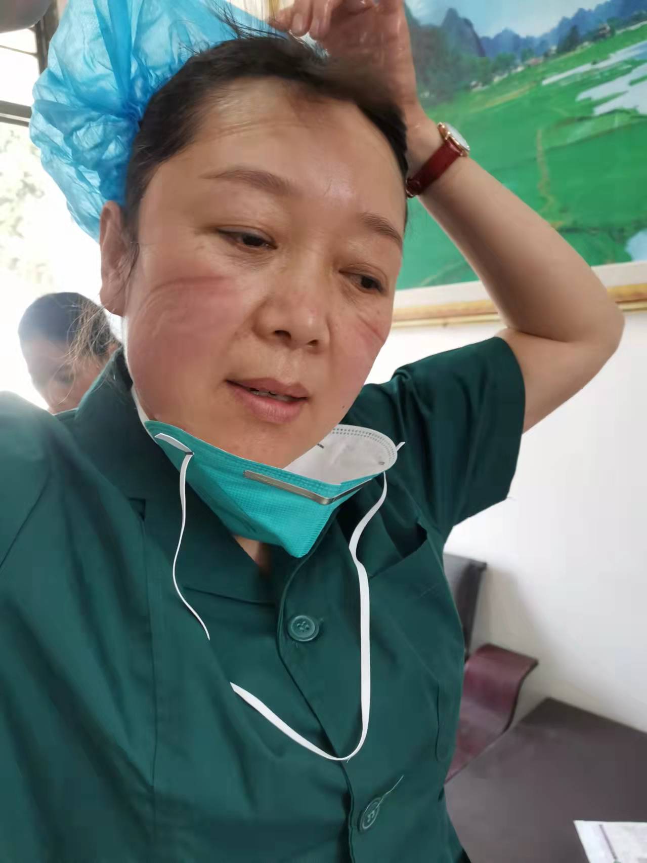 10多天來,雷雪玲總是早出晚歸,穿著厚厚的隔離服,戴著橡膠手套、防護(hù)眼鏡、帽子和面罩,套著過膝的腳套,連續(xù)工作數(shù)十個(gè)小時(shí),期間不能上衛(wèi)生間、不能喝水,甚至不能擦擦汗。天氣寒冷,但是一天工作下來,她總是被厚厚的防護(hù)服悶得汗流浹背,手被泡得發(fā)白,臉上也被口罩勒出層層痕跡,加上本來就患有心臟病的她,經(jīng)常會(huì)體力不支,但是她卻不顧病痛的折磨,從未請(qǐng)過一次假,每天都堅(jiān)持帶病入戶采樣。晚上工作結(jié)束,她的雙腿已經(jīng)麻木,也顧不上休息片刻又匆忙準(zhǔn)備第二天檢測(cè)需要的試劑,有時(shí)為了方便早上出發(fā),她直接和衣而臥。她的這種不怕苦,不怕累,舍小家為大家的犧牲精神深深感動(dòng)著每一位醫(yī)護(hù)人員!