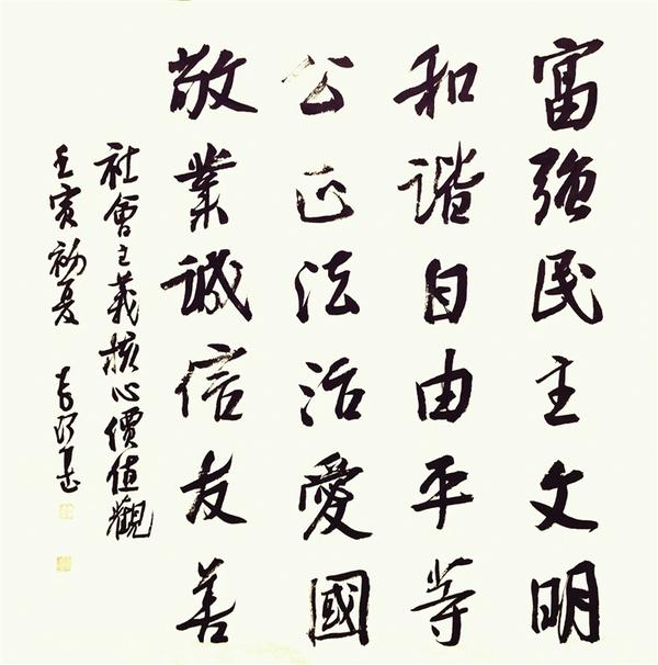 編者按:墨香浸潤沙潁河畔,筆力雄健魅力三川。為大力弘揚和培育社會主義核心價值觀,傳承周口地域文化特質和精神標識,日前,周口市文明辦、周口市文學藝術界聯(lián)合會、周口市書法家協(xié)會通過周口報業(yè)傳媒集團發(fā)出“作品征集令”,擬舉辦社會主義核心價值觀暨“道德名城”名家書法作品展。作品征集啟事發(fā)出后,周口籍書法名家及廣大書法愛好者紛紛投來精彩紛呈的書法作品,體現(xiàn)對社會主義核心價值觀的深刻理解,展示“道德名城、魅力周口”建設成果,講好周口故事,展現(xiàn)周口形象。今天起,本報特開設《社會主義核心價值觀暨“道德名城”名家書法作品》專欄,陸續(xù)刊發(fā)優(yōu)秀書法作品,以此營造弘揚和踐行社會主義核心價值觀的良好氛圍,用傳統(tǒng)書法技藝展現(xiàn)優(yōu)秀歷史文化資源,為“道德名城”增光添彩。敬請關注。