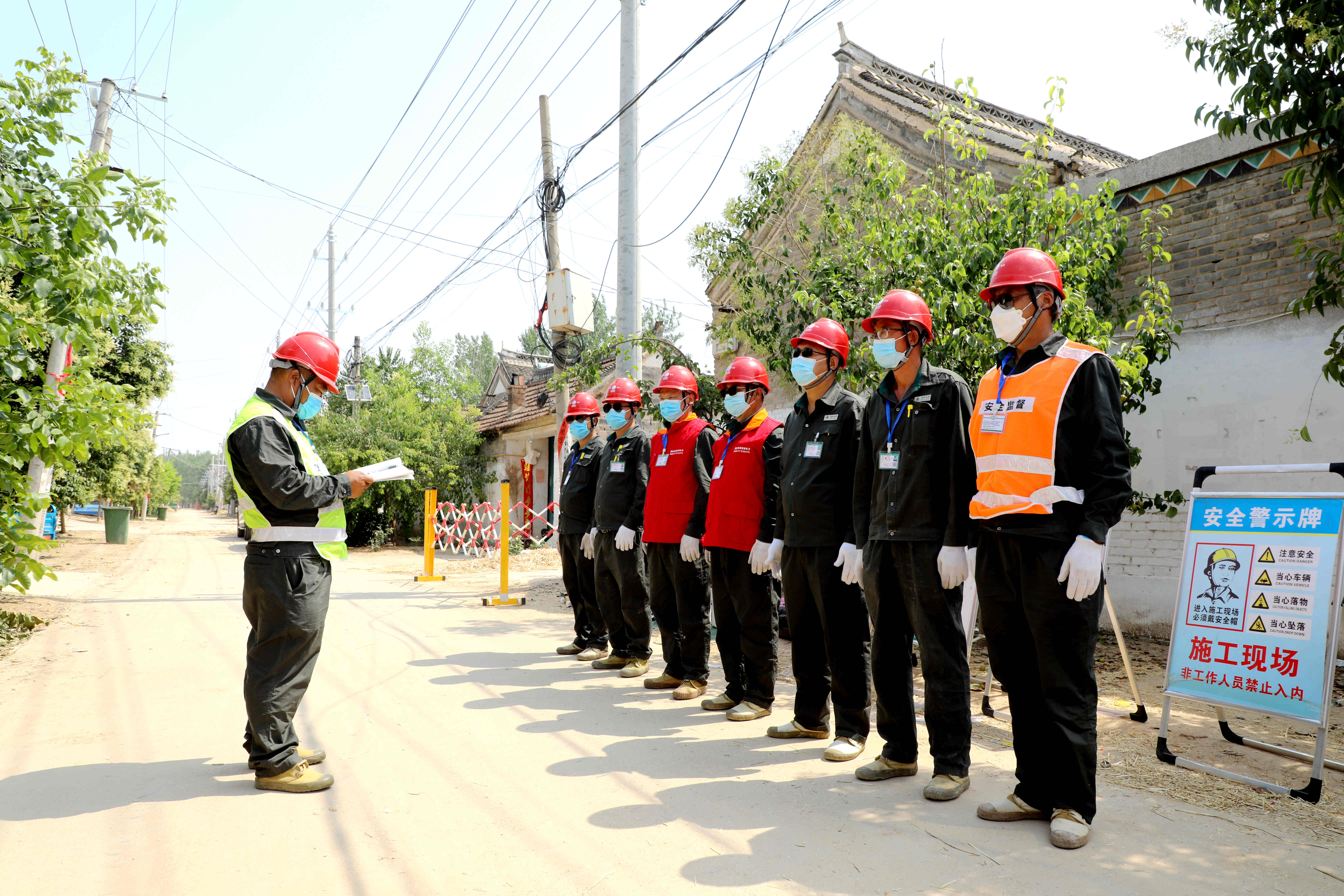 6月9日,在西華縣皮營鄉(xiāng)齊莊行政村潭張1號臺區(qū)施工現(xiàn)場,國網(wǎng)西華縣供電公司組織焦裕祿共產(chǎn)黨員服務(wù)隊帶領(lǐng)施工人員分工協(xié)作、高效配合,安裝電表箱、更換下戶線、增容變壓器、新建低壓線路。