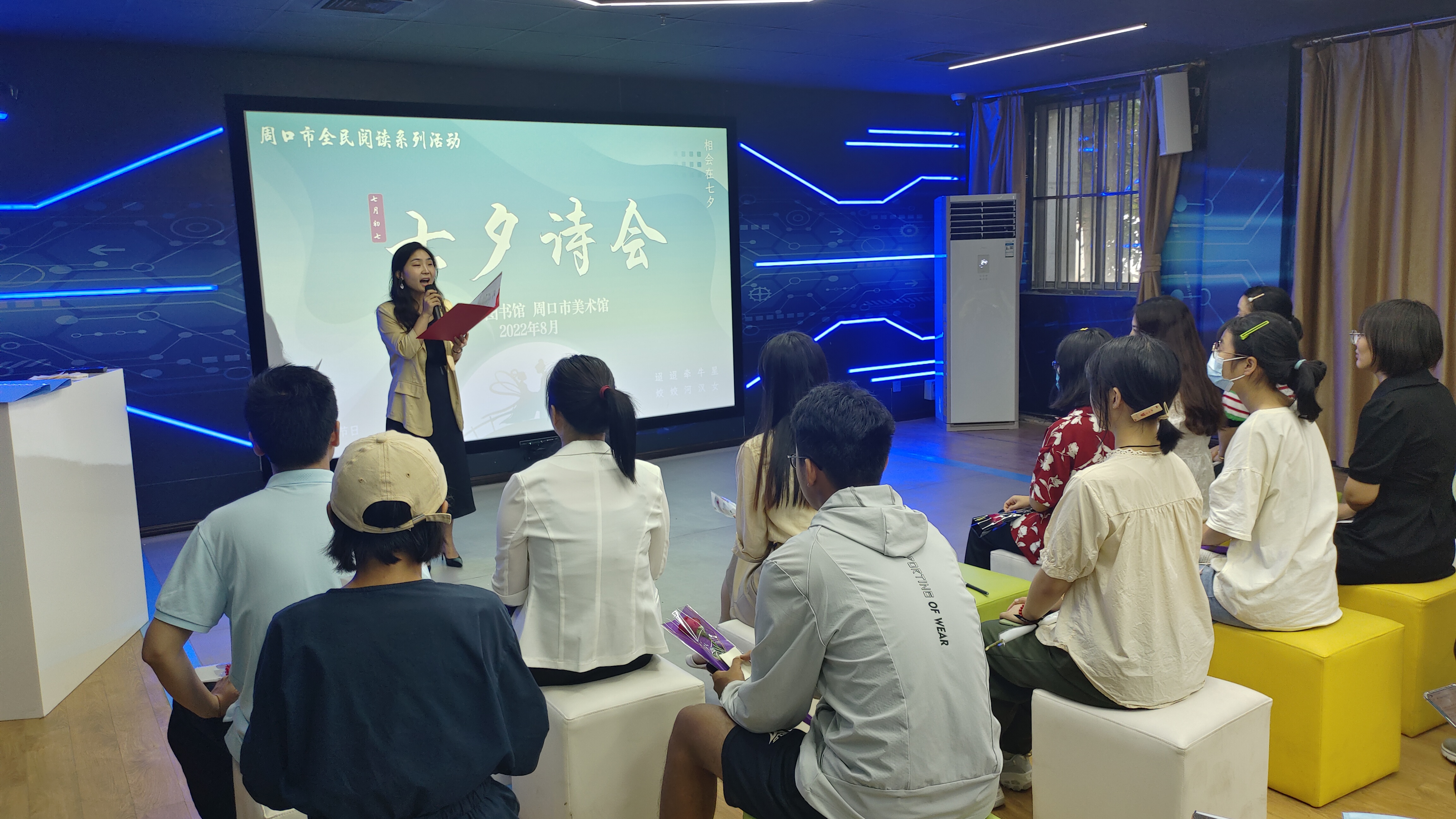 8月4日,市圖書館與市美術(shù)館在一樓智慧空間共同舉辦七夕詩會,以詩傳情,開啟中國式浪漫,20多名詩詞愛好者參加活動。
