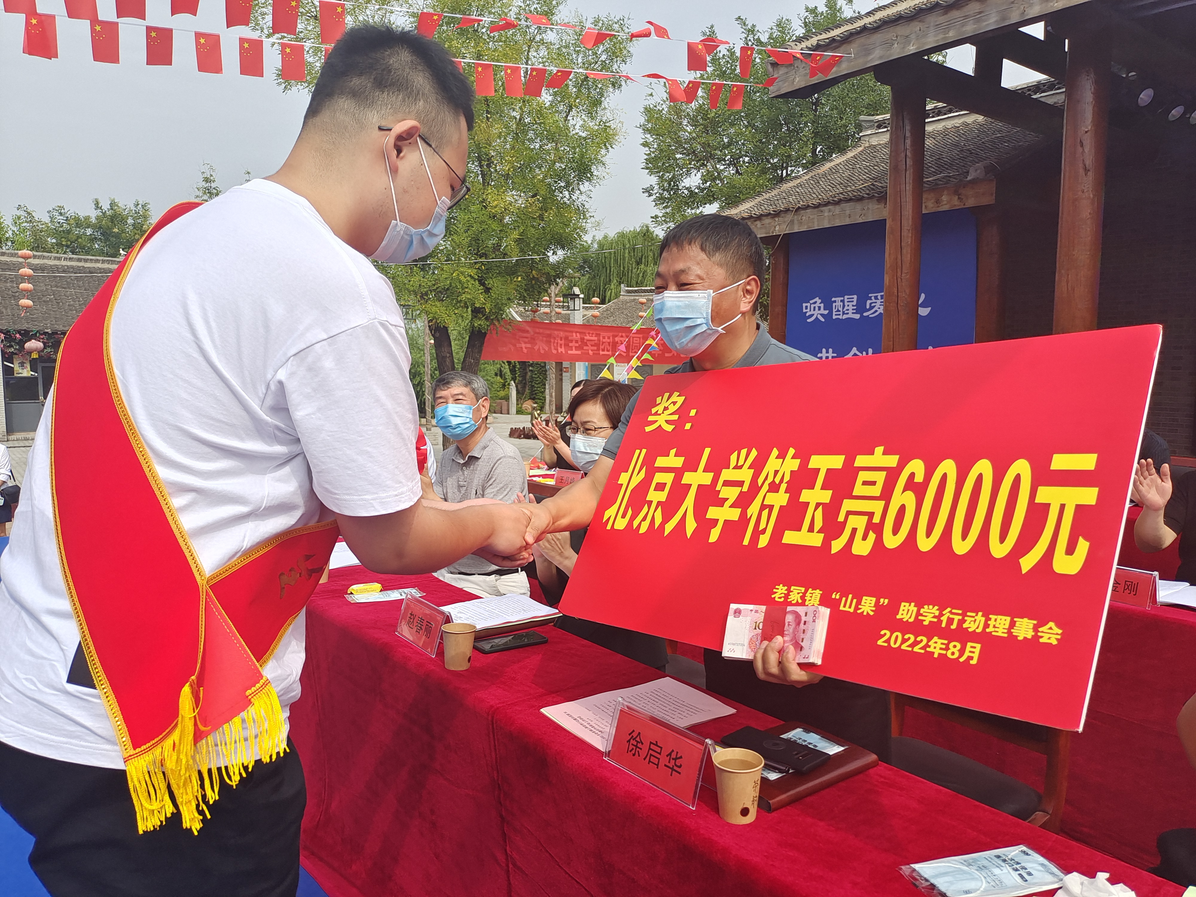 圖片說明:8月20日上午,太康縣老冢鎮(zhèn)2022年“山果”助學(xué)行動(dòng)暨慶祝第38個(gè)教師節(jié)表彰大會在老冢鎮(zhèn)劉寨印象舉行,對9個(gè)尊師重教先進(jìn)行政村、8個(gè)教育工作先進(jìn)單位、63名優(yōu)秀教師、100名優(yōu)秀中小學(xué)生、1名2022年考入北京大學(xué)的研究生,及17名被雙一流高校錄取的大一新生進(jìn)行了表彰,共發(fā)放獎(jiǎng)學(xué)獎(jiǎng)教資金10.36萬元,詠絮書畫院向獲獎(jiǎng)學(xué)生贈(zèng)送了書畫作品。會前,與會人員共同觀看了文藝匯演和《美麗鄉(xiāng)村看老?!芳o(jì)錄短片。