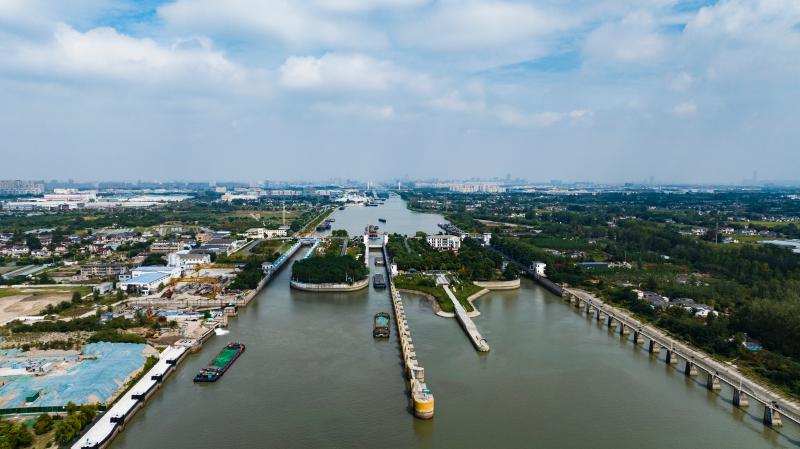 9月27日上午,“豫貨出海、周向世界”采訪組B組來到位于揚(yáng)州市長江北岸的施橋船閘。古鎮(zhèn)施橋,長江與大運(yùn)河在這里交匯,施橋船閘就位于這個交匯點(diǎn)上。