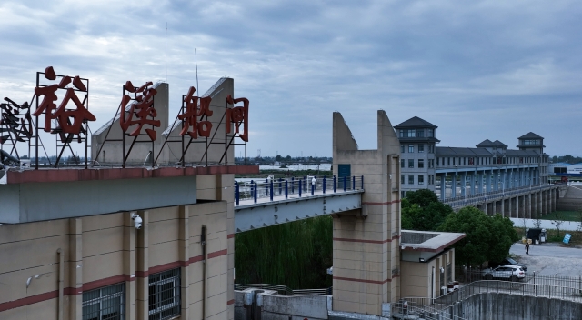 9月24日,豫貨出海、“周”向世界——周口航運(yùn)出海大型異地采訪活動采訪組B組沿江淮運(yùn)河南下,一路上攬渡槽、臨派河、經(jīng)巢湖閘,再沿裕溪河左岸大堤下行,經(jīng)過一道河灣后,一座高大的建筑如臥龍一般橫跨裕溪河上。