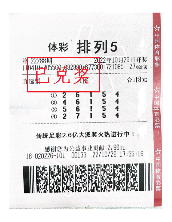 河南省體育彩票管理中心周口分中心兌獎大廳11月1日迎來了幸運購彩者王先生(化名)。10月29日,排列5第22288期開出號碼“5、6、1、5、4”,周口市區(qū)購彩者收獲“排列5”直選1注,攬獲獎金10萬元。