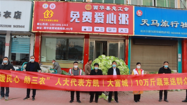 “中國(guó)好人”、周口市人大代表方凱幫助黃橋鄉(xiāng)菜農(nóng)解決蔬菜滯銷難題,并通過西華縣紅十字會(huì)向這些單位捐贈(zèng)10萬斤蔬菜,讓滯銷菜變“暖心菜”。方凱的這一舉動(dòng),受到群眾的稱贊。