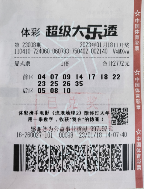 超級(jí)大樂(lè)透第23008期開(kāi)獎(jiǎng),前區(qū)開(kāi)出號(hào)碼“04、09、17、22、25”,后區(qū)開(kāi)出號(hào)碼“01、05”。李先生憑借這張超級(jí)大樂(lè)透中得2注二等獎(jiǎng)74272元,1注三等獎(jiǎng)10000元,60注五等獎(jiǎng)18000元,30注七等獎(jiǎng)3000元,300注八等獎(jiǎng)4500元,550注九等獎(jiǎng)2750元,獎(jiǎng)金合計(jì)112522元。