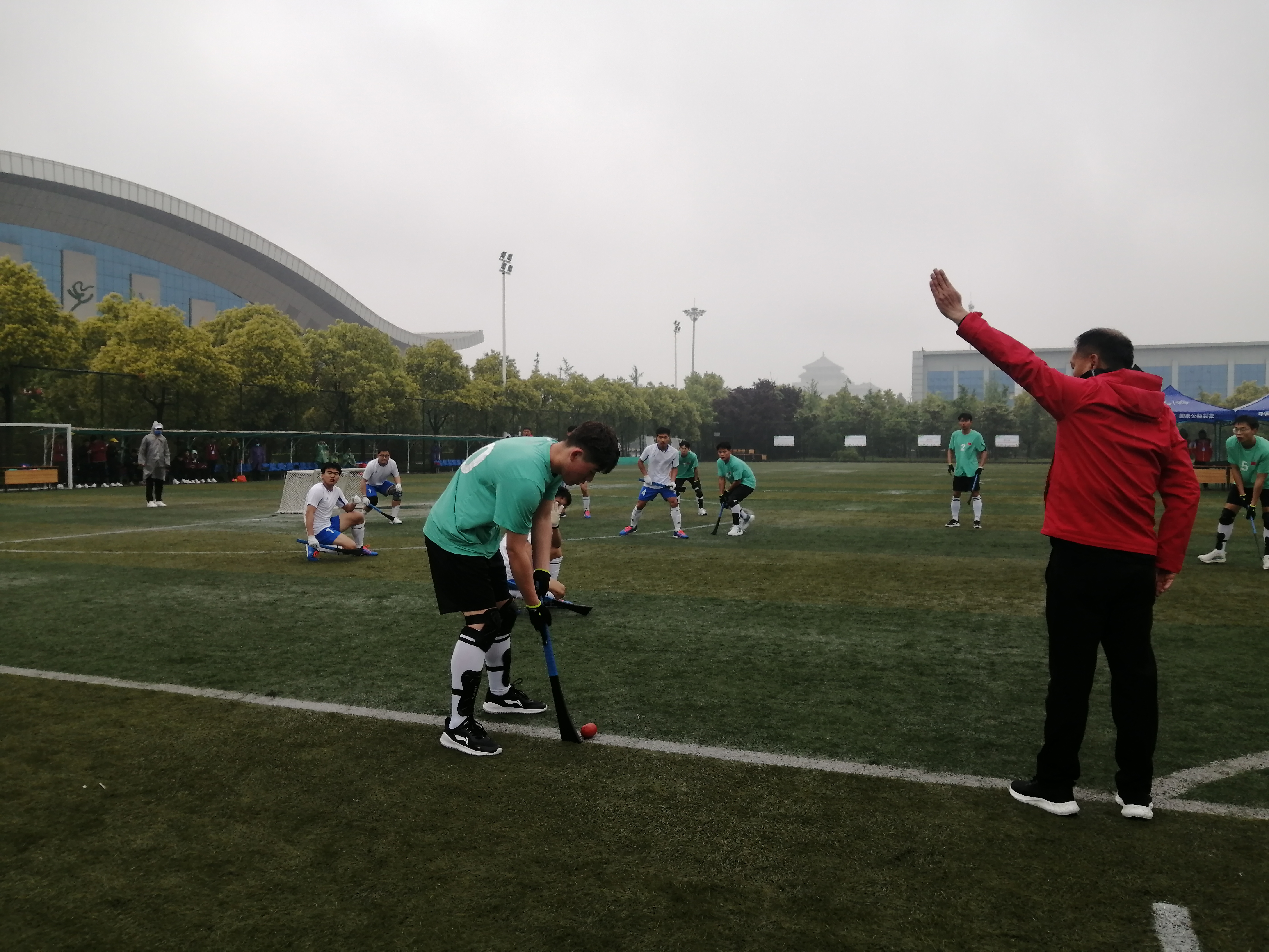 上午8時30分,淅瀝瀝小雨和大幅降溫讓大家感到非常不適,周口和鄭州兩支代表隊的10名運動員卻精神抖擻齊聚賽場。隨著一聲哨響比賽開始,兩隊球員揮動擊球板擊打木球,一場激烈比賽便開始了。