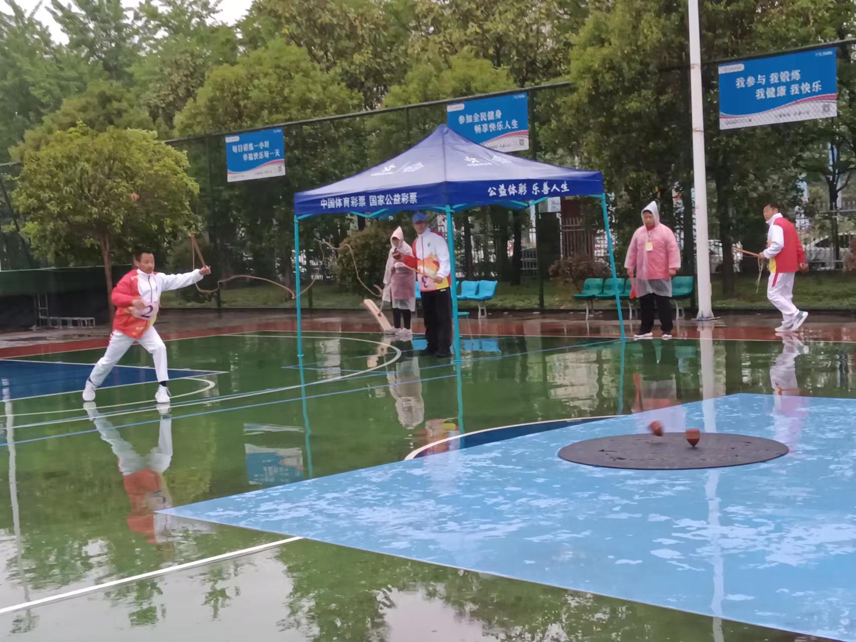 本次陀螺比賽項目設(shè)有團體賽、男子單打、女子單打等項目,共六個代表隊參賽。