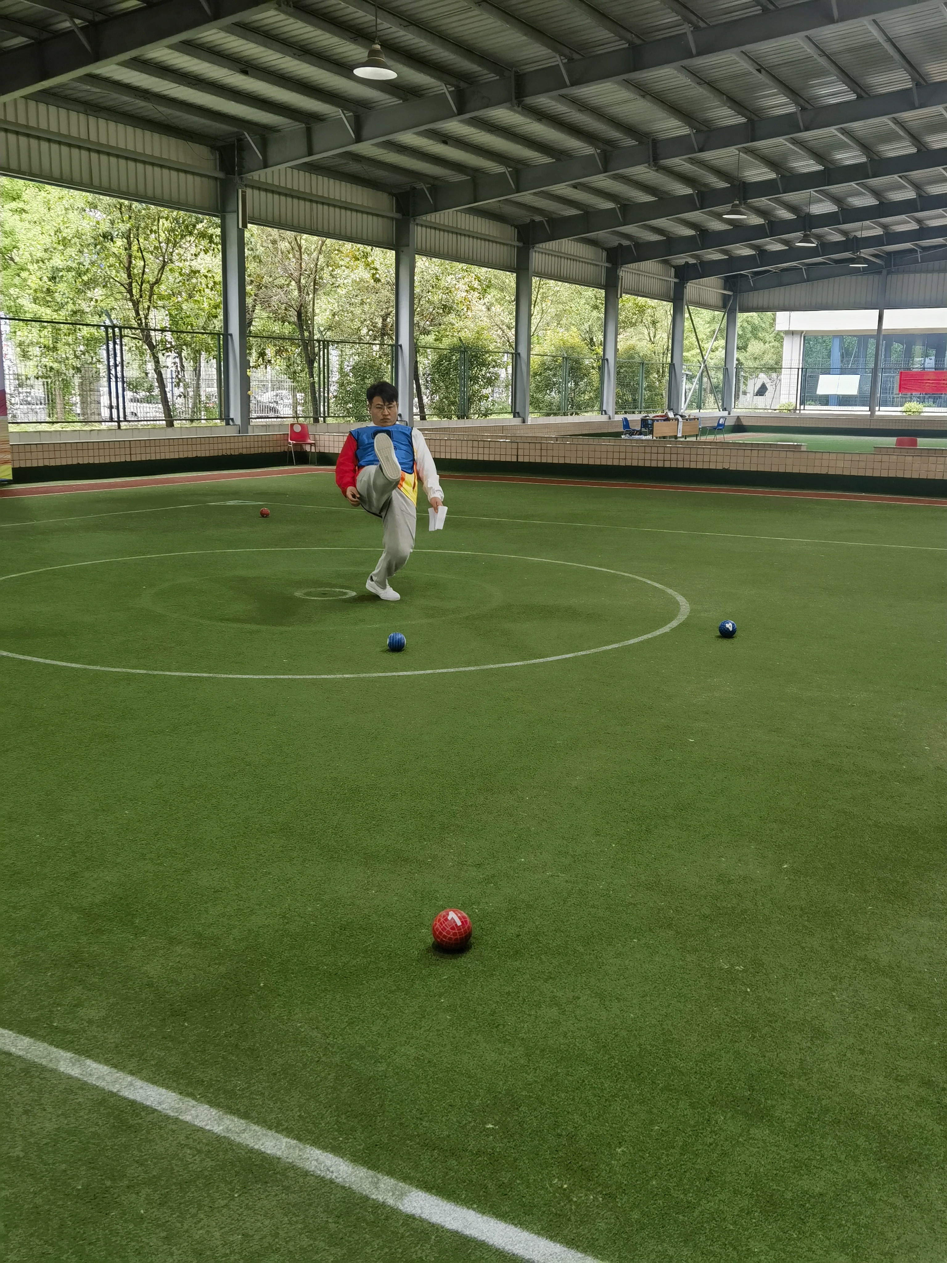 上午11時40分,在蹴球項目男子單蹴的決賽現(xiàn)場,周口代表隊與南陽代表隊決賽正如火如荼地進(jìn)行。隨著觀眾陣陣喝彩,周口代表隊運動員劉風(fēng)光以100:91的成績一舉奪冠。與此同時,在相鄰的周口代表隊與河南城建代表隊女子單蹴的決賽場也進(jìn)入高潮,最終河南城建代表隊運動員趙佳勝出,周口代表隊運動員吳思桔和南陽代表隊運動員曼孜來·木沙江獲二等獎。