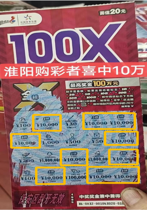 據(jù)悉,王先生所在的淮陽區(qū)新站鎮(zhèn)上只有一家編號為4116260032的體彩實(shí)體店,由于離自己居住的地方較近,每次路過這家體彩實(shí)體店就喜歡挑幾張?bào)w彩頂呱刮來試試手氣。當(dāng)天,王先生如往常一樣來到這家體彩實(shí)體店,在實(shí)體店代銷者的推薦下王先生挑選了幾張最近新上市的面值為20元的“超級加倍II”。沒想到其中一張竟刮出了10萬元大獎,王先生激動地連忙找實(shí)體店代銷者確認(rèn),經(jīng)過認(rèn)真核對王先生確實(shí)是中得10萬元大獎。