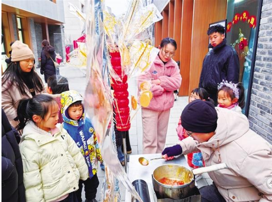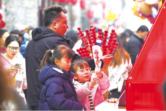 近日,周家口南寨歷史文化街區(qū)擊鼓開街,第三屆“三川十館·春會”同步啟幕。街巷深處,兩位小朋友在家長陪同下挑選冰糖葫蘆,笑語盈盈。