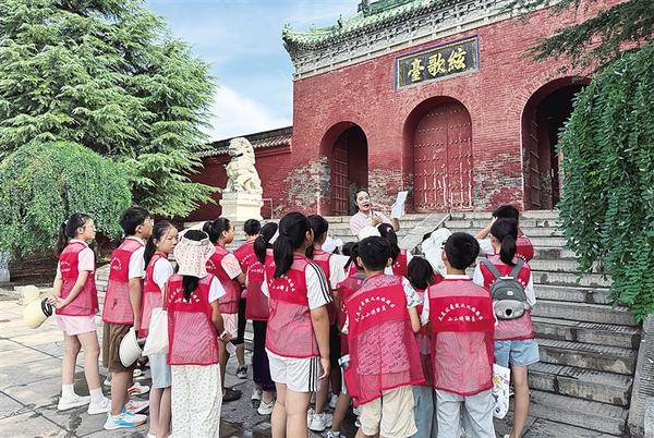 講解員為“小小講解員”集中培訓。8月11日,太昊伏羲陵文化旅游區(qū)“小小講解員”培訓活動圓滿落幕。此次活動中,淮陽區(qū)30余名青少年懷揣著對家鄉(xiāng)文化的熱愛,經(jīng)過為期一周的集中培訓,具備基本的講解能力,為傳承淮陽千年文脈注入了新鮮血液。記者 侯俊豫 通訊員 莊秋薇 攝