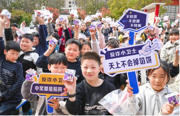 “警惕陌生來電”“中獎都是陷阱”“96110”等反詐手舉牌,增強了宣傳的趣味性和傳播力?,F(xiàn)場派發(fā)了家校安全共育防詐騙倡議書與定制反詐鑰匙扣,特別準備了安全、營養(yǎng)的學(xué)生奶,幫助同學(xué)們適時補充能量、提高專注力,為反詐安全教育活動保駕護航。