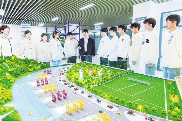 師生在學校“智慧仿真實訓室”了解周口港建設(shè)。近日,周口市港航產(chǎn)業(yè)發(fā)展商會、周口城市職業(yè)學院戰(zhàn)略合作暨“AI+港航創(chuàng)新中心”簽約揭牌。這是我市又一家職業(yè)院校參與周口航運發(fā)展、校企深度合作的生動實踐。記者 劉華志 攝影