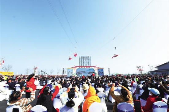 在為期一個(gè)月的非遺民俗巡游展演中,各類民俗技藝輪番登臺、盡顯風(fēng)采,不僅讓中原民俗文化走進(jìn)市民心間,還為第三屆周口伏羲文化旅游節(jié)注入濃郁的文化底蘊(yùn),讓羲皇故都的文旅魅力持續(xù)綻放。組委會相關(guān)負(fù)責(zé)人表示:“展演活動不僅豐富了第三屆伏羲文化旅游節(jié)的內(nèi)涵,還激活了民間文藝活力,推動非遺活態(tài)傳承,讓更多人在沉浸式體驗(yàn)中感悟優(yōu)秀民俗文化的深厚底蘊(yùn),持續(xù)擦亮羲皇故都、水城淮陽的文旅名片?!跤浾咔褚环奂t服飾搖曳,竹編花籃輕晃,古樸經(jīng)歌婉轉(zhuǎn)悠揚(yáng)……3月20日,在第三屆周口伏羲文化旅游節(jié)非遺民俗展演現(xiàn)場,擔(dān)經(jīng)挑表演一登場便成為全場焦點(diǎn)。