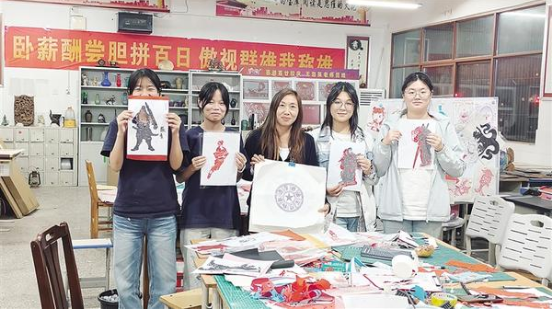 9月26日,淮陽(yáng)中學(xué)的藝術(shù)教室里,王海英正指導(dǎo)學(xué)生剪紙。