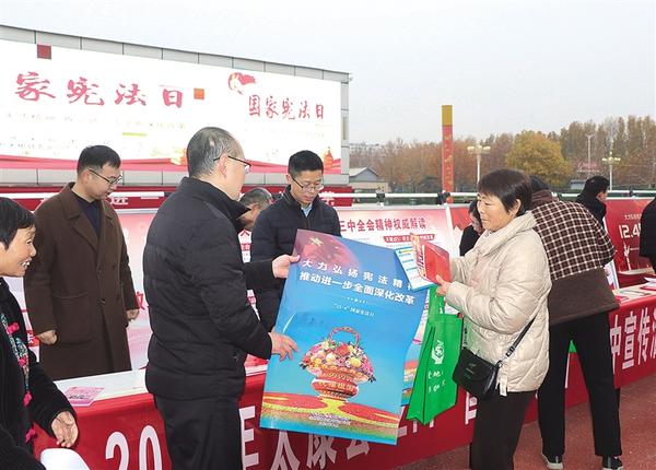 近日,太康多個(gè)單位在縣人民廣場(chǎng)舉行“12·4”國(guó)家憲法日集中宣傳活動(dòng),向廣大群眾普及憲法知識(shí),引導(dǎo)廣大群眾牢固樹(shù)立憲法意識(shí)、維護(hù)憲法權(quán)威??h長(zhǎng)張峰,縣領(lǐng)導(dǎo)邱范卉、劉鳳芹、王洪彬、史耀閣等到場(chǎng)參觀指導(dǎo)。