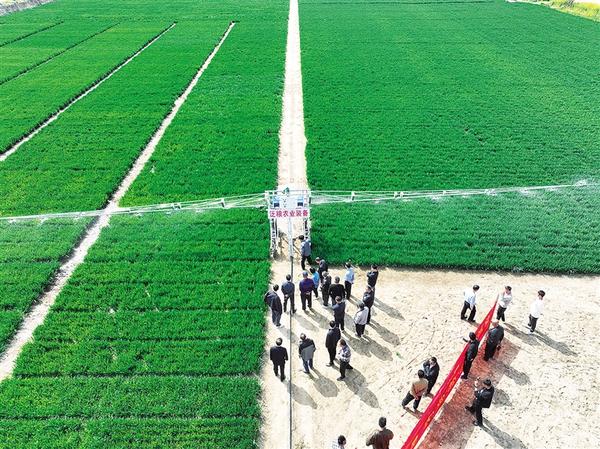 設(shè)施農(nóng)業(yè)看泛區(qū)。近日,黃泛區(qū)農(nóng)場一企業(yè)自主研發(fā)的小型自走式澆地機(jī)備受種植大戶關(guān)注。