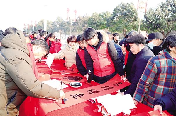近日,在鄲城縣世紀(jì)廣場上,來自全省各地的百余位書法名家齊聚一堂,紅幅鋪展成綿長的喜慶長卷,墨香與年味在寒冬里交融。