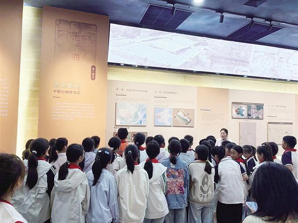 5月23日,學(xué)生在平糧臺古城遺址博物館內(nèi)參觀。當(dāng)日,淮陽一小學(xué)師生走進平糧臺古城遺址,走進這片承載著幾千年文明的土地,參加了一場別開生面的“行走的課堂——考古研學(xué)”活動。