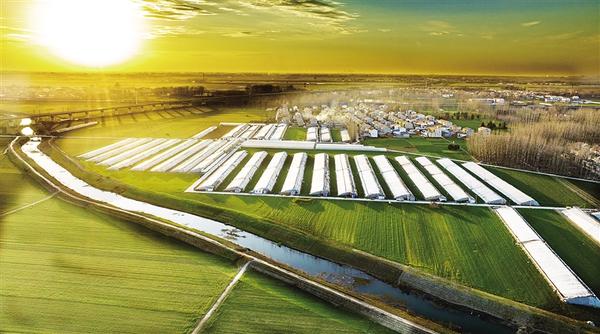 1月16日,在扶溝縣柴崗鄉(xiāng)梅橋村,曲折蜿蜒的幸福河環(huán)繞村旁,河岸一側(cè)整齊的蔬菜大棚在冬日暖陽照耀下閃閃發(fā)光,一幅鄉(xiāng)村振興嶄新畫卷躍然眼前。