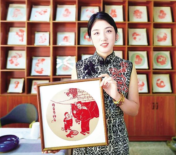 非遺剪紙代表性傳承人劉秀華展示剪紙作品。母親節(jié)前夕,劉秀華創(chuàng)作了一組以“母愛”為主題的剪紙作品,祝福天下母親節(jié)日快樂、健康長(zhǎng)壽。