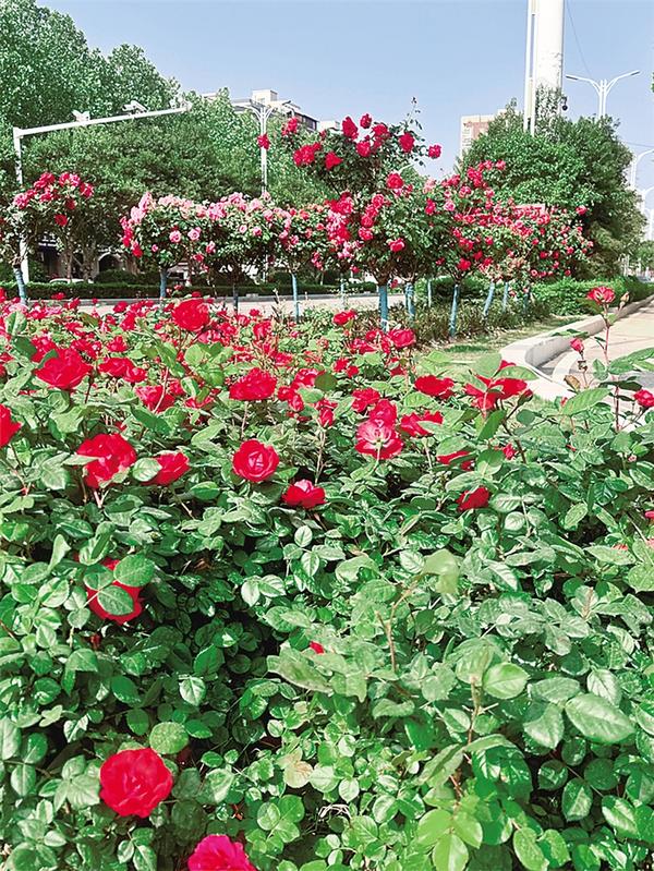 4月20日,記者在中心城區(qū)多個路口看到,碩大的月季花搖曳生姿,將市區(qū)裝點得格外美麗,過往市民倍感愉悅。