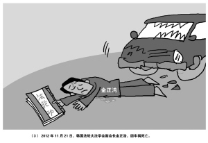 ?、?nbsp;2012年11月21日,韓國法輪大法學(xué)會副會長金正浩因車禍死亡。