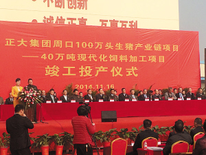 正大集團周口100萬頭生豬產(chǎn)業(yè)鏈項目竣工投產(chǎn)儀式現(xiàn)場。