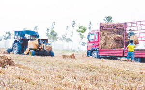 今年“三夏”,沈丘縣堅(jiān)持做到進(jìn)地作業(yè)機(jī)械全部安裝秸稈粉碎還田裝置,一律執(zhí)行“低留茬、細(xì)粉碎”作業(yè),對(duì)不符合作業(yè)要求的機(jī)械,及時(shí)制止并督促就地整改,達(dá)不到標(biāo)準(zhǔn)要求的地塊,責(zé)成村級(jí)組織破茬耕翻,確保秸稈粉碎還田質(zhì)量。圖為付井鎮(zhèn)境內(nèi)一輛安裝秸稈粉碎還田裝置的聯(lián)合收割機(jī)正在田間作業(yè)。(肖飛  攝)